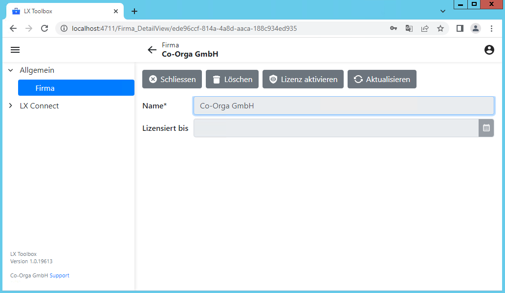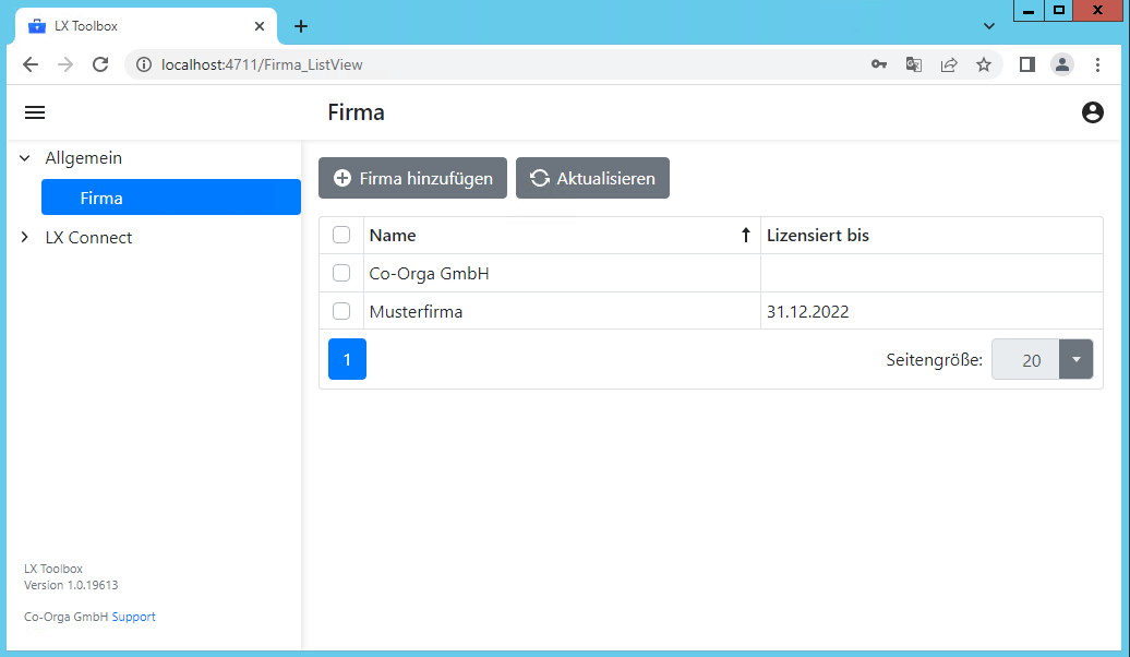 In der Liste der hinzugefügten Firmen ist auch sichtbar, ob und bis wann eine gültige Lizenz registriert ist:
