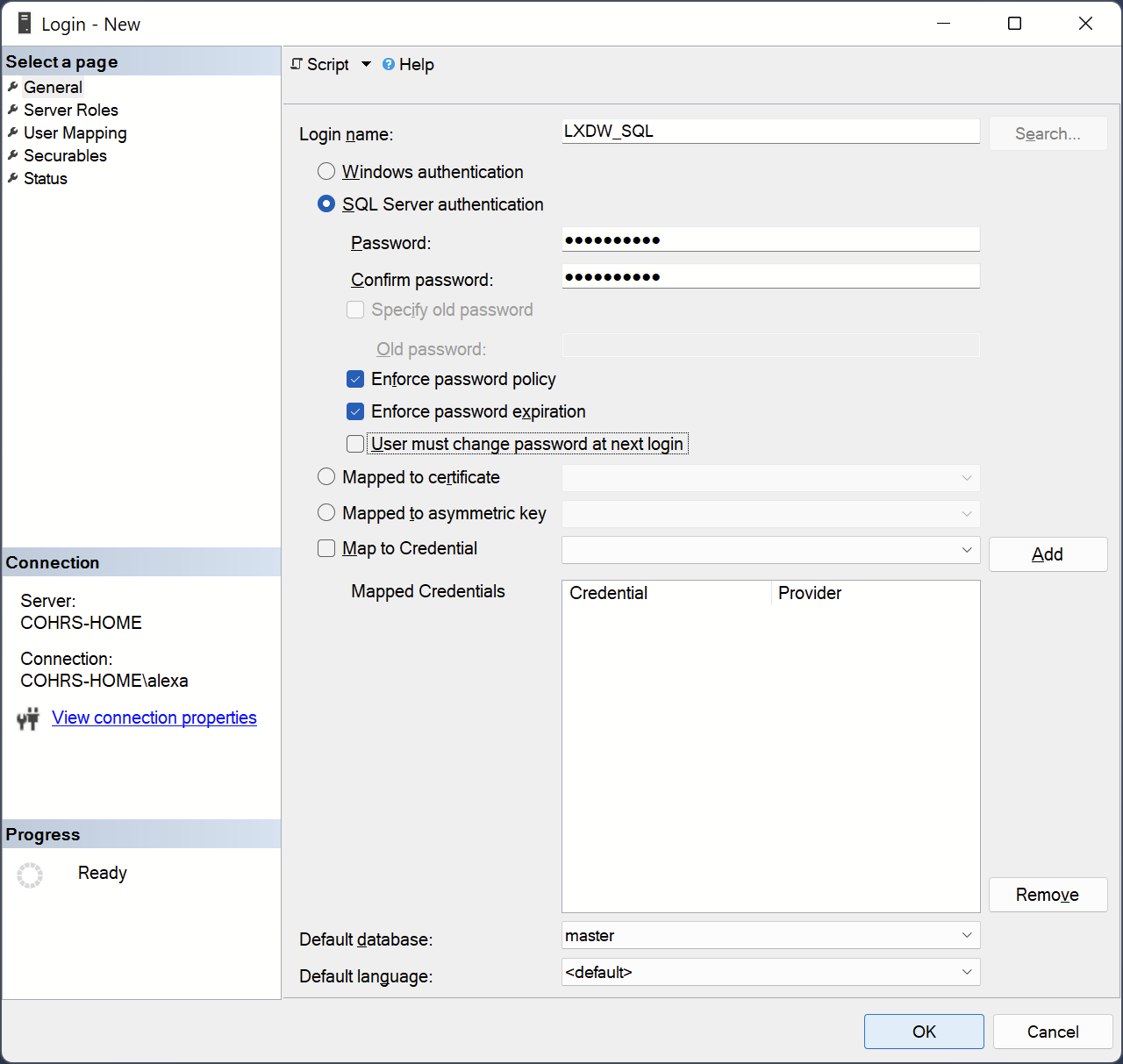 Nachdem in Lexware ein neuen Benutzer für den Datenzugriff durch LX Data Warehouse angelegt worden ist, kann mit der Einrichtung der Zieldatenbank begonnen werden.